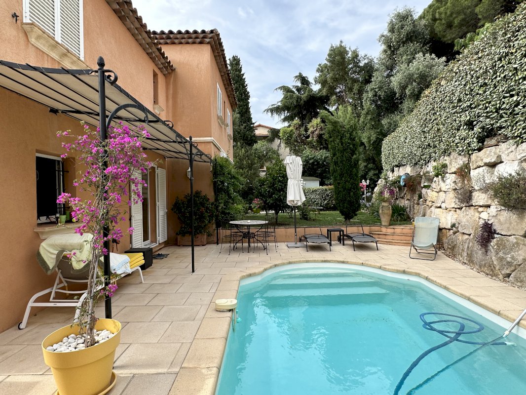 Jolie petite villa située à 1km200 du centre et des plages très bien aménagée, avec un jardin privatif de 415 m2 environ dans petite copropriété,