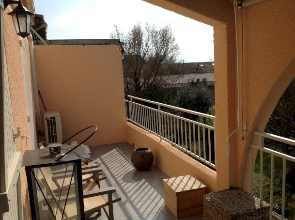 Appartement dans petite résidence au 2ème et dernier étage composé d un séjour / cuisine de 2 chambres salle d eau avec Wc d une grande terrasse demie couverte de 15 m2 sans vis-a -vis d immeubles et vue sur grimaud
