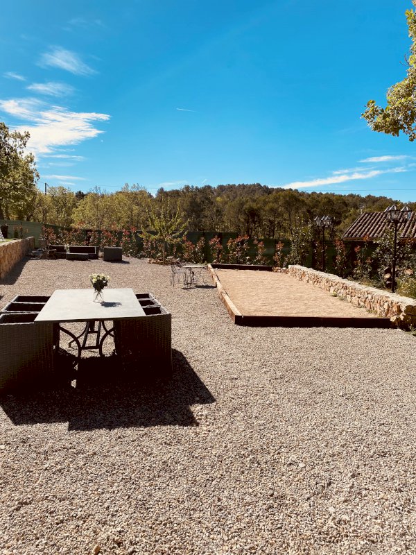 Le jardin dispose d’une piscine 10 par 4, d’un terrain de pétanque et d’une petite aire de jeux pour les enfants niché sur un terrain d’environ 2000m2.