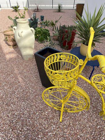 Une autre terrasse de 16 m2 , et le grand plus un terrain de 170 m2 qui entoure l’appartement qui est un Rez de Jardin surélevé , ce terrain a été agrémenté de gravier de marbre rose et de belles plantes grasses .