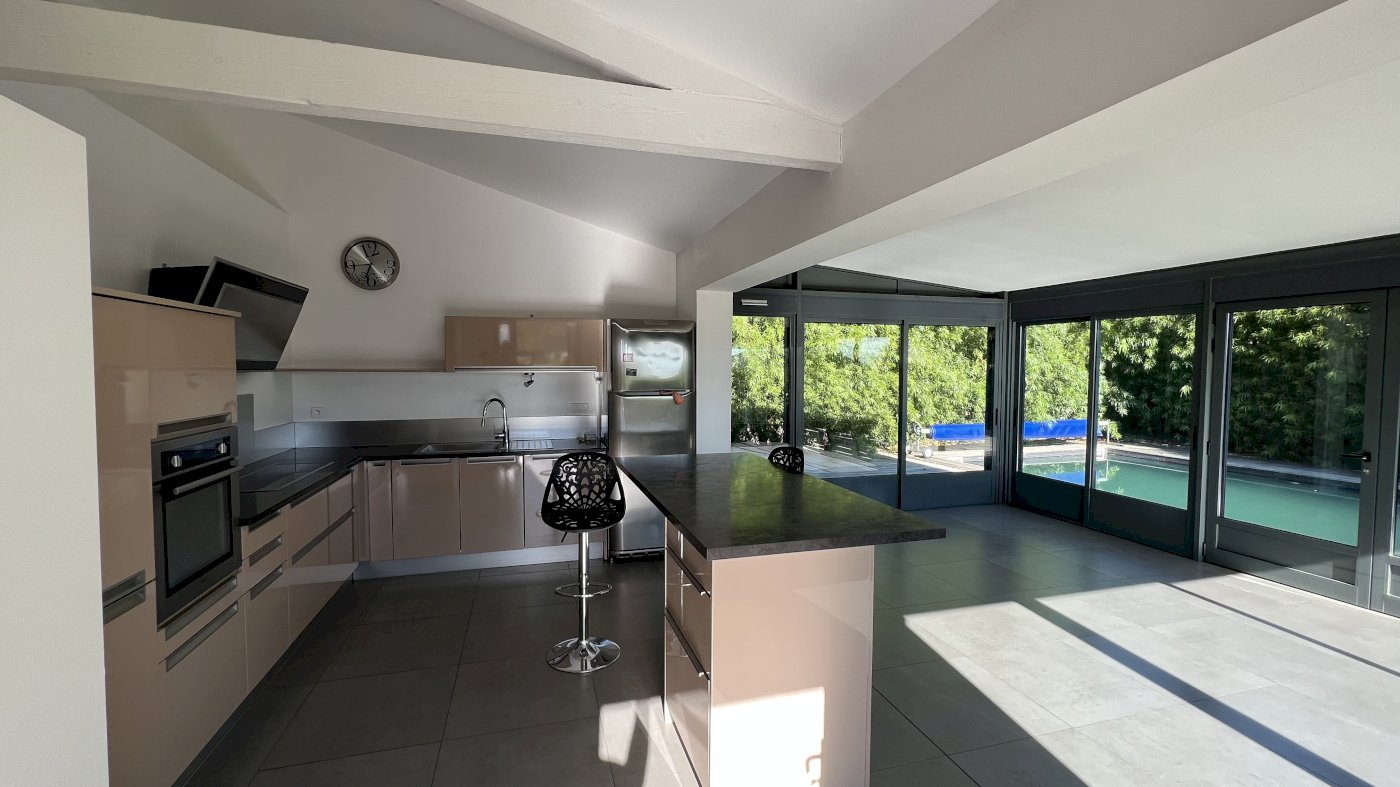 Cette maison a été conçue avec un souci du détail et une attention particulière à la qualité. Le rez-de-chaussée offre un vaste séjour de 42 m². La cuisine moderne équipée est de type américaine, donnant sur le séjour et la piscine.
