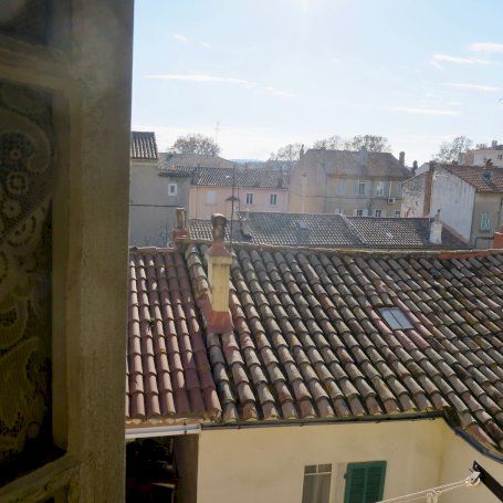 Côté sud: pièce à vivre/chambre lumineuse, 20m2, vue sur les toits sans vis-à-vis, calme, cheminée, et salle de bains/wc 3m2 avec fenêtre, baignoire sabot.