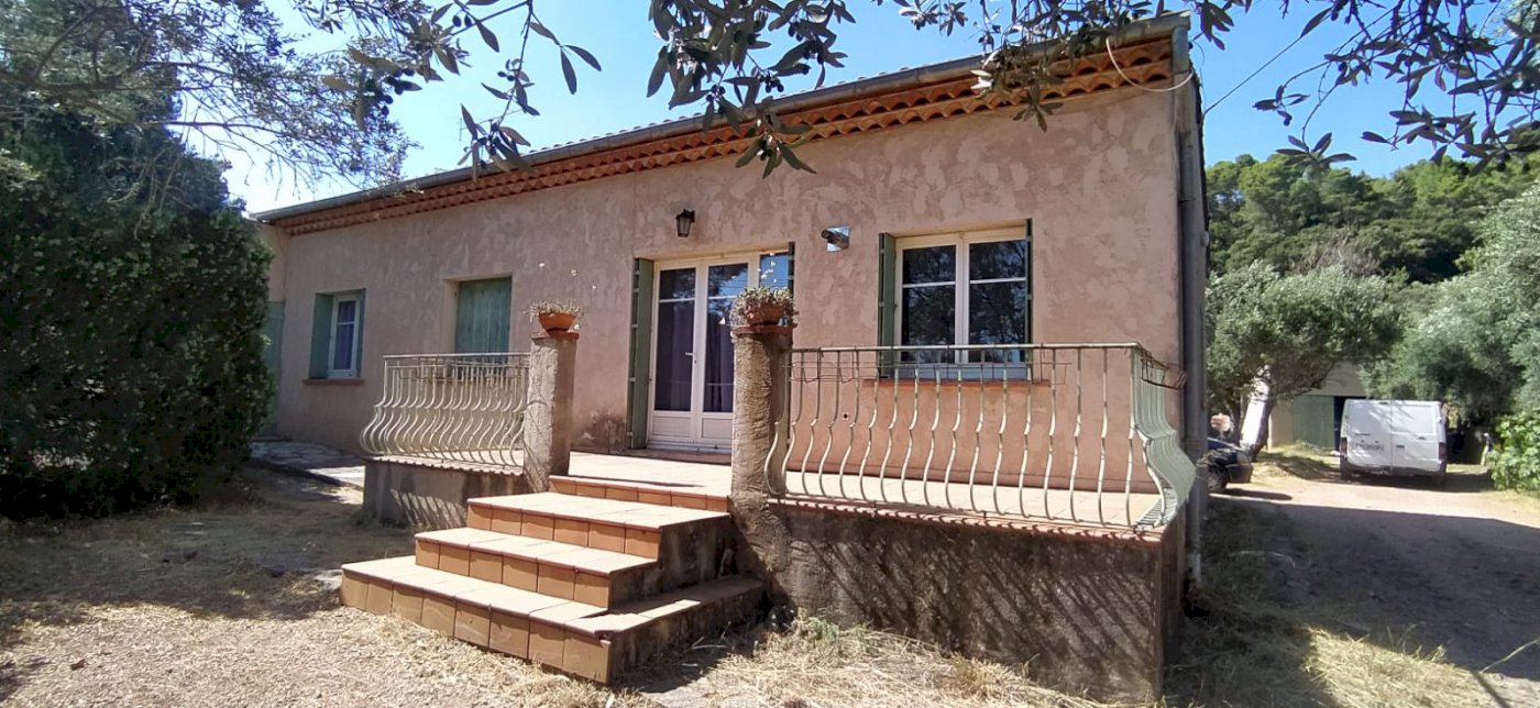 Maison de plain pieds de 120m2 situé dans une zone naturelle au calme sur un terrain de 1400m2 complanté d'oliviers, un garage de 20m2 et 2 grandes terrasses.