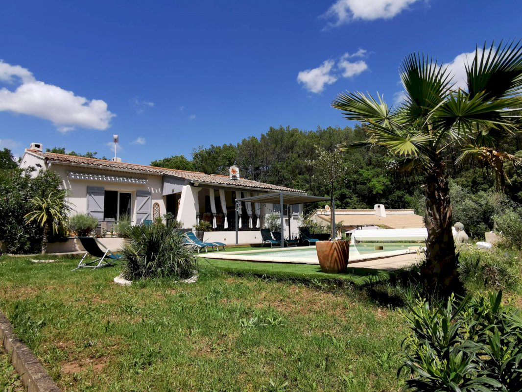 Plein sud, profitez d'une ambiance vacances provençale sur une terrasse couverte, une autre semi couverte et une grande plage donnant sur une piscine au sel chauffée de 8mx4m, liner neuf.