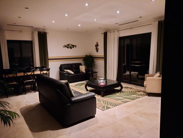 Elle se compose d'une grande pièce de vie avec une cuisine ouverte, une suite parentale, 2 chambres et un garage.