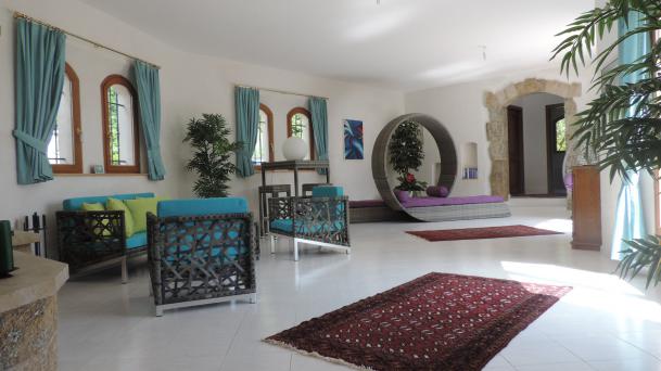 Le caractère atypique de la villa est souligné par le fait que chaque pièce est séparée par une arcade d'env. 2 m de large entourée de pierres de taille.