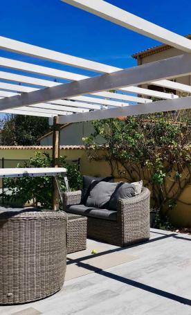 - Terrasse carrelée de 30m2 avec pergolas en bois de 20m2,