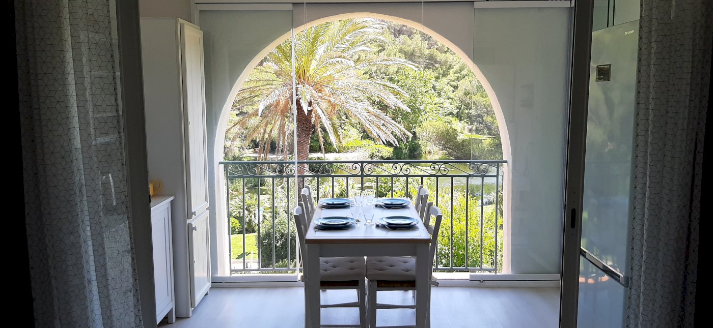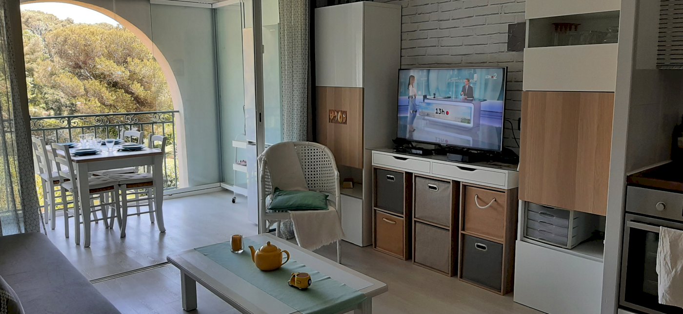 L'appartement est situé dans le Domaine privé de la Coudoulière (35 ha de verdure avec 2 lacs), Résidence Les Rivages à 100 m des plages et à 50 m du port de la Coudoulière.