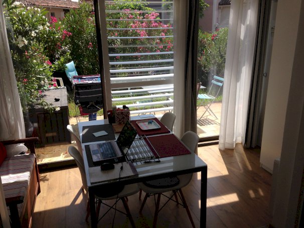 3 pièces, 28 m2 + 12 m2 loggia fermée par 5 baies en double vitrage, Total en surface Carrez. Terrasse et Rez de jardin Clos : (12+8)= 20 m2. Excellent état. Lumineux, Orientation sud-ouest. Traversant. A 50 m du Petit port Bateaux . 4 couchages, Chambre double lit 160 cm + Chambrette fermée (2 lits x 90 cm). Rangements. Salon kitchenette (18 m2), Salle d'eau-WC, Classement officiel 3 étoiles, Electroménager complet, TV, Internet, Wi-Fi, Climatisation, Grand store électrique, Piscine privée par badge, Parking extérieur possible. Pas de vis à vis, Tous commerces à 300 m, Plages à proximité : 1 km. Plages célèbres : 8 km. Pistes Cyclables sécurisées sur 20 km : Saint Tropez : 5 km, Village de Cogolin : 5km; Ste Maxime: 7km, Calme, Tranquille. Mobilier et Electro-ménager complets.