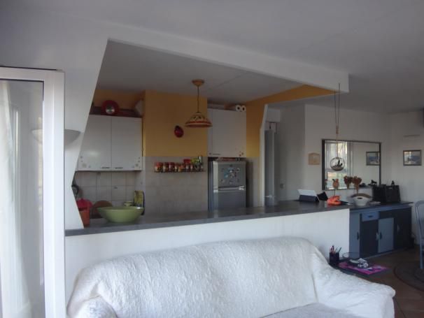 vue sur mer .et montagne .1er etage. Terrasse 45m2.parking privatif.cuisine americaine .douche a l’italienne.2 chambre avec placards ( une chambre est plus petite ) .wc separe .pas de travaux a faire .clim dans chambre .train a proximité. Centre ville 10mn a pied .commerces tres proches .copro 11 logements .faibles charges.plage a 150 metres .baisse de prix importante .ramene de 285000 a 270000 €