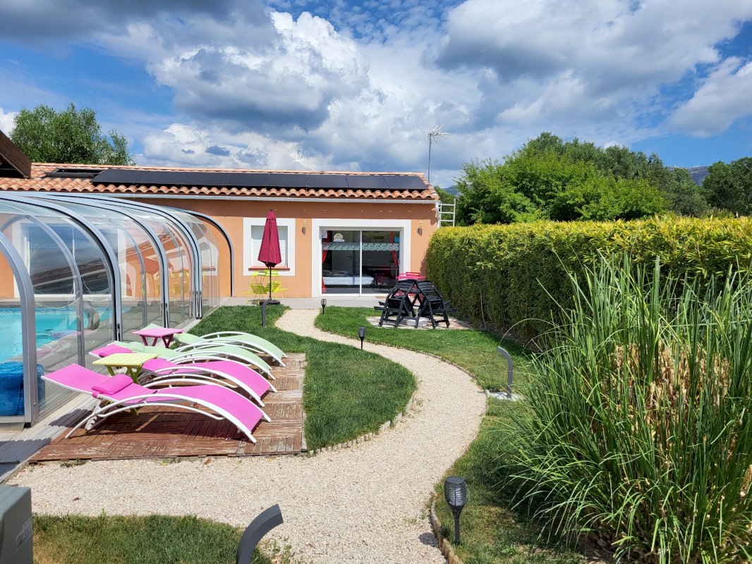 Cette Villa offre en complément, une dépendance (47m² env) dont vous pourrez profiter pleinement ou exploiter en tant que chambre d'hôtes, car aménagée d'un jacuzzi, sauna infra rouge, salle de détente, d'une chambre avec son coin repas et un WC + douche, ouverte sur une terrasse jouxtant la piscine couverte et chauffée.