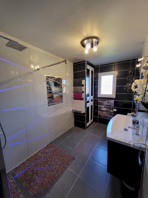 La partie nuit vous offre trois belles chambres (11m² env) donc 2 avec placards et une avec dressing, une salle de douche italienne avec wc et grande vasque. (7m²)
