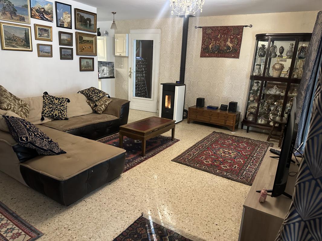 Cuisine aménage semi ouvert. Grand séjour.Salle a manger adjacent a la cuisine. Une deuxième salle a manger dans un grand loggia couvert.