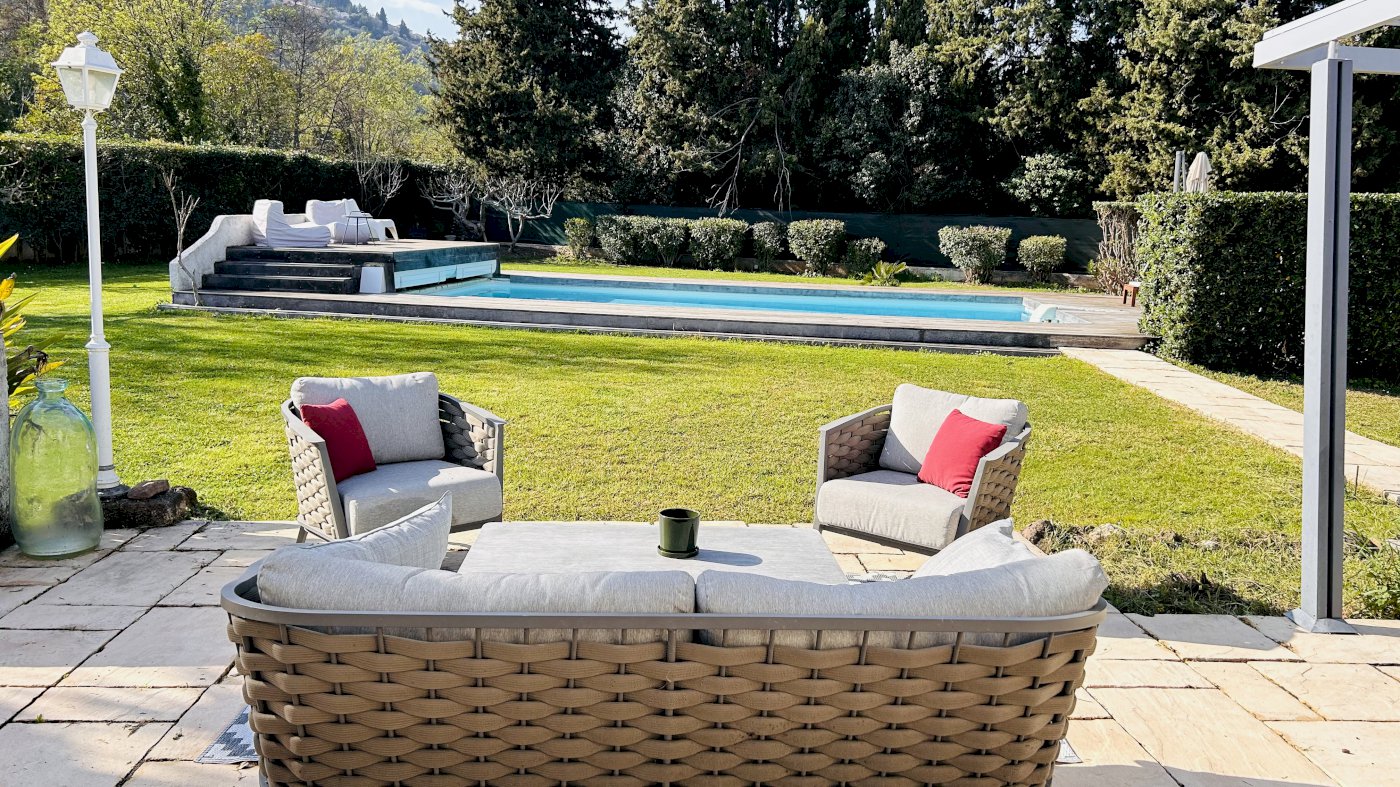 A l'extérieur, vous trouverez aussi un atelier, un double garage, un abri vélo/moto et un abri piscine ainsi qu'un large espace pour le stationnement (+ de 6 voitures).