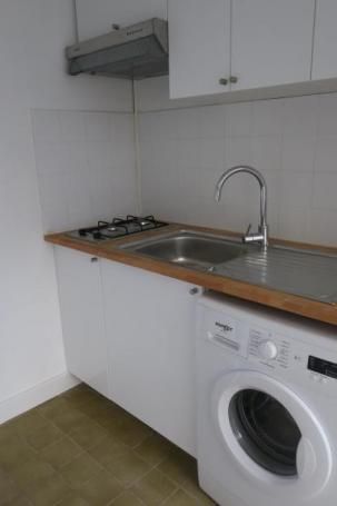 Cuisine aménagée et équipée : plaque à gaz, hotte aspirante, lave linge, réfrigérateur congélateur, micro-onde / four, nombreux rangements