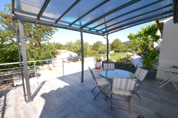 un 2 pièces 40 m2 salon kitchenette une chambre salle d'eau clim reversible Wi-Fi pergola couverte 20 m2