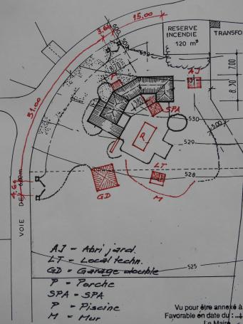 - pièce indépendante attenante de 11 m2 avec 2 cuves de fuel de 2000 l chacune - abri de stockage d'env. 20 m2 avec 2 cuves de récupérateur d'eau pluviale (1000 l chacune) pour entreposer le bois pour la cheminée, les machines pour le jardin