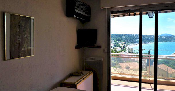 Situé au 2° et dernier étage, avec terrasse de 6m²dominant la baie de Bandol, ce T1 orienté est-sud-est est équipé de la climatisation.