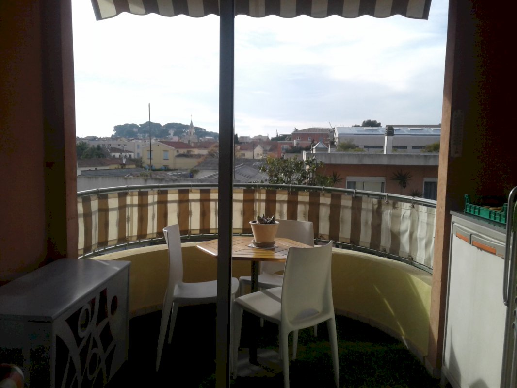 le tout donnant sur un balcon de 5m2 avec vue sur le clocher de Sanary.