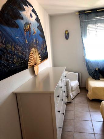 Se situe dans une résidence fermée calme et arboré avec parking, Piscine et à 400 m de la plage, commerce et port.
