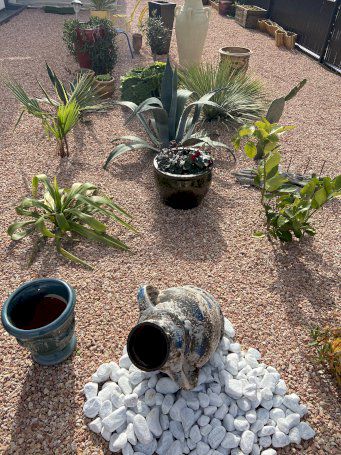 Une autre terrasse de 16 m2 , et le grand plus un terrain de 170 m2 qui entoure l’appartement qui est un Rez de Jardin surélevé , ce terrain a été agrémenté de gravier de marbre rose et de belles plantes grasses .