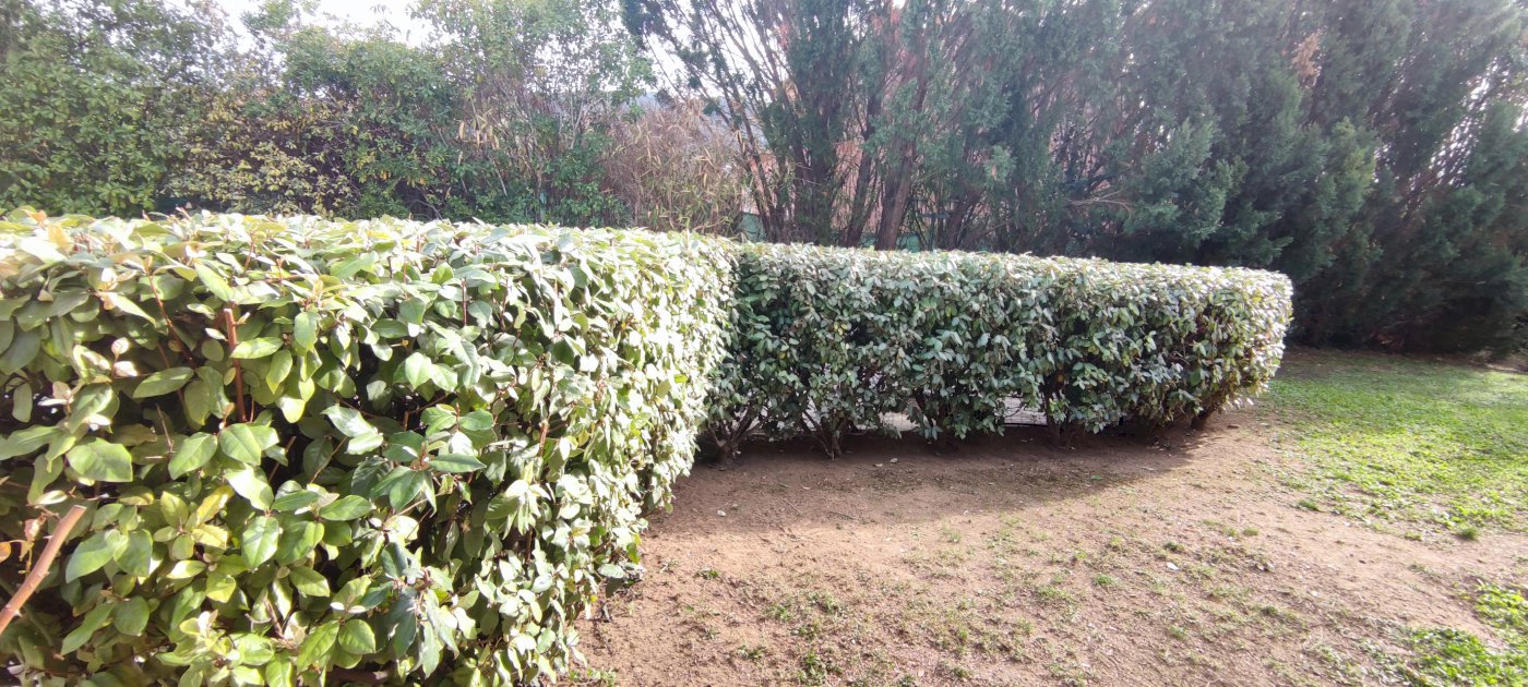 Terrain paysager plat de 1200 M2 avec piscine en béton 11X6 en forme haricot profondeur maxi 2.10 m et Abri à bois en béton avec toiture tuiles de 5mX2.